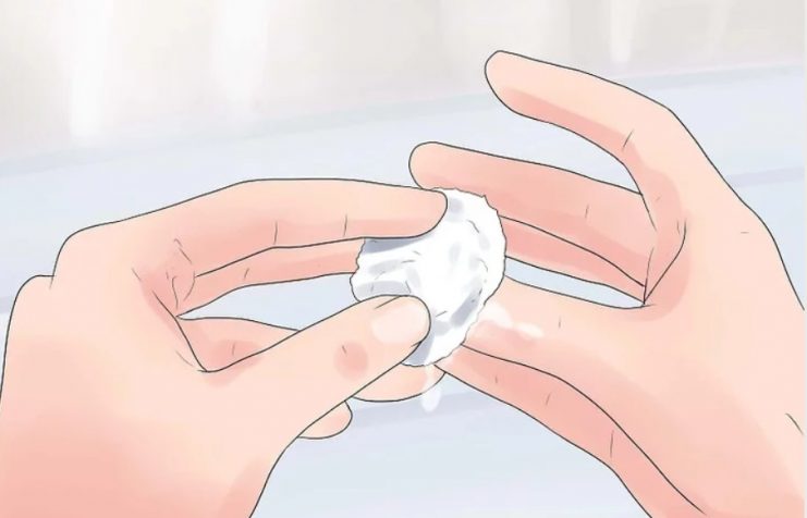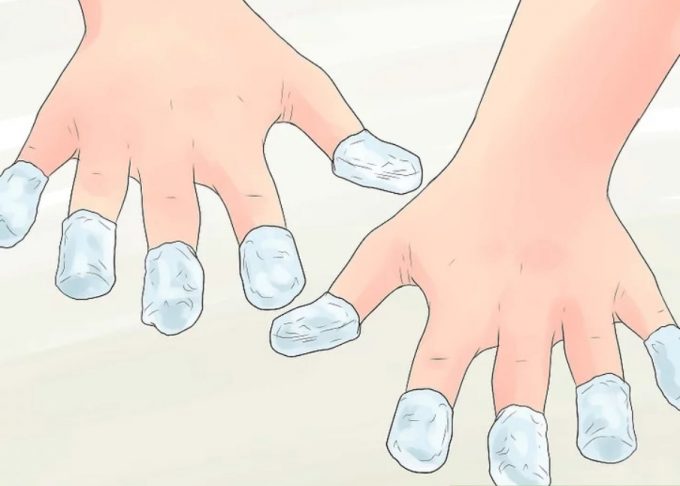 استون را درون یک کاسه بریزیرد و پدهای پنبه ای را درون آن خیس کنید. سپس پد پنبه ای را که با استون به طور کامل خیس شده است را روی ناخن قرار دهید.دقت کنید از استون با درجه خلوص بالا استفاده کنید.
