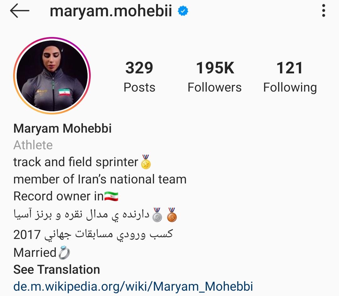 مریم محبی متولد ششم بهمن 78 است و کسب بیش از 45 مدال داخلی و خارجی در رقابتهای مختلف دوومیدانی، کارنامه درخشانی است که با اضافه شدن مدالهای نقره و برنز مسابقات آسیایی رنگ و بوی دیگری به خود گرفته است. او درباره رمز موفقیت اش گفته: «از 9 سالگی توسط معلم ورزش سوم دبستانم استعدادیابی و وارد این رشته شدم و بعد از آن وقتی خانواده دیدند خودم علاقه دارم، حمایتم کردند.» واضح است که استعدادیابی به موقع و حمایت خانواده، زمینههای اتفاقی هیجانانگیز و رکوردشکنی را برایش فراهم کرد و توانست اولین دختر راهیافته به مسابقات جهانی در طول تاریخ دوومیدانی ایران شود. بیشتر پست های اینستاگرامی این ورزشکار زن ایرانی که بین 30 تا 40 هزار لایک میخورد، مربوط به لحظات کسب مدال و تمرینات ورزشی است که سخت و طاقت فرسا به نظر میرسد.