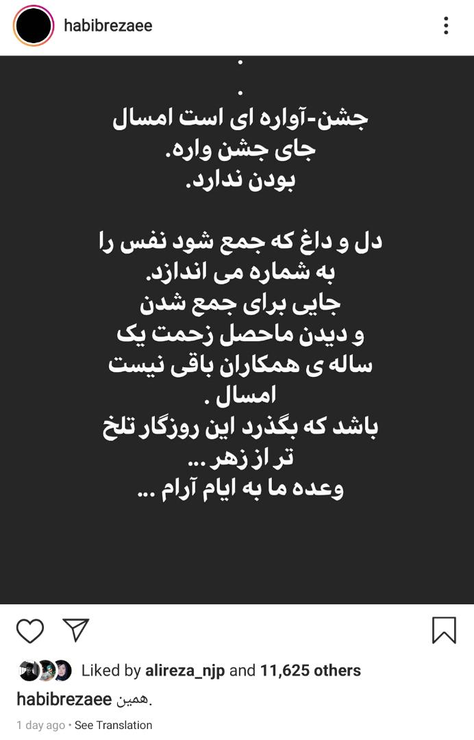 متن پست منتشر شده توسط حبیب رضایی به شرح زیر است: