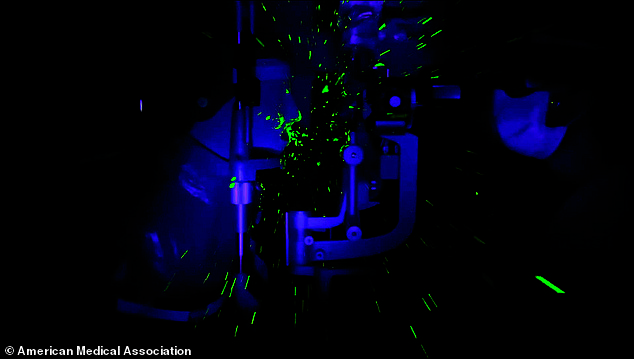 بعد از شبیه سازی سرفه و در کمال ناباوری بیشترین مقدار قطره های آب روی خود میکروسکوپ و فضای اطراف محل قرار گیری چشم بیمار دیده شد. همچنین قطره هایی روی سینه، شانه ها و بازوها و حتی موها ، دست ها و کفش های متخصص چشم نیز دیده شد. حتی رنگ فلورنست را می شد روی کف محل، دیوارها و پوشش پنجره ها نیز دید.