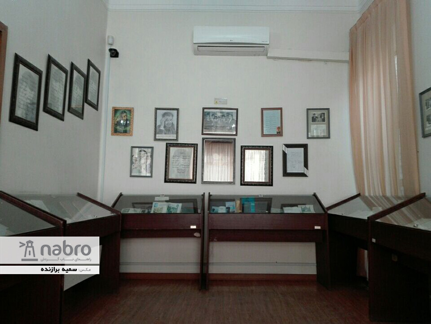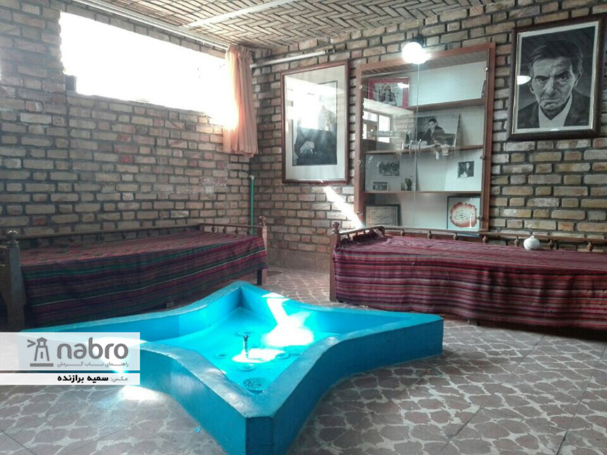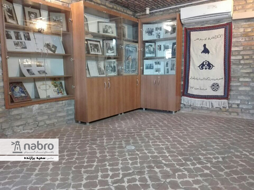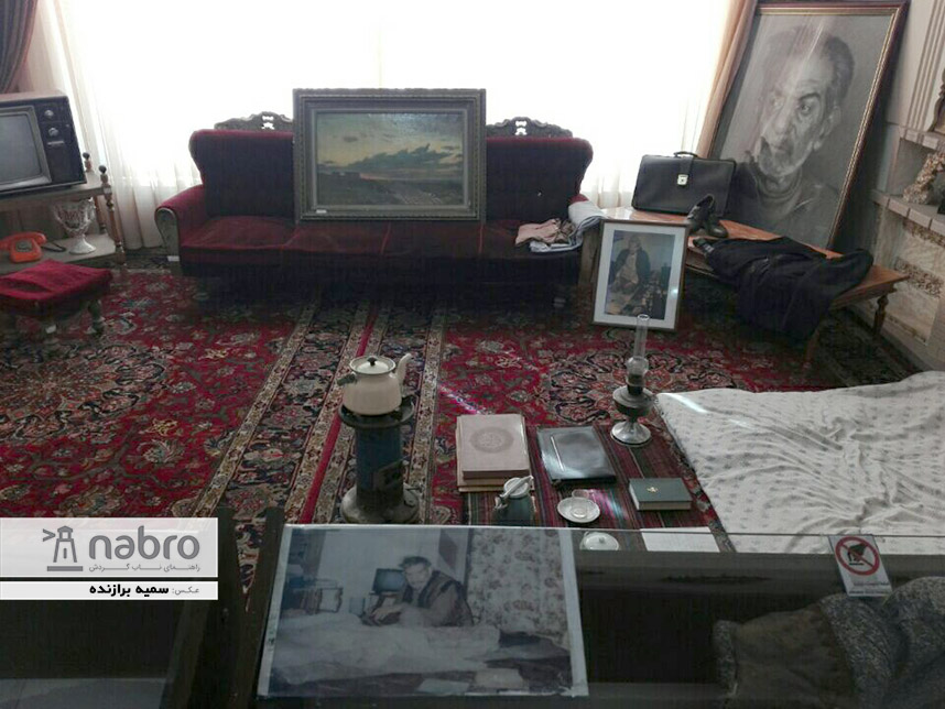 از چند پله بالا میرویم و به اولین اتاق میرسیم. خانه از زمان فوت استاد دستنخورده باقی مانده است. فقط در بخشهایی از خانه و برای محافظت از اسناد و کتابهای شعر استاد تغییراتی داده شده است ولی قسمتهای اصلی دستنخورده ماندهاند.