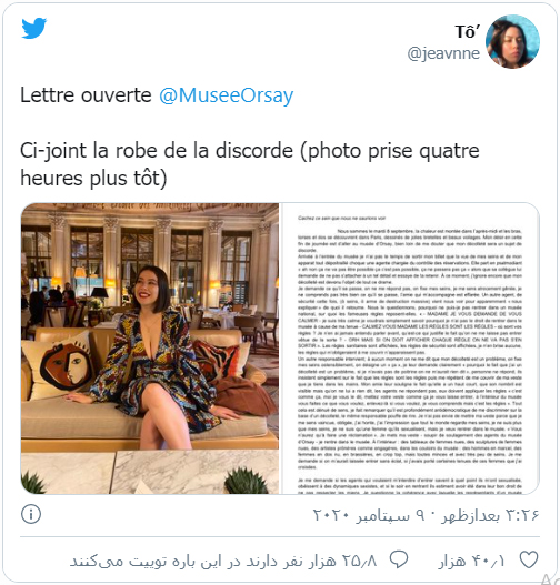 موزه اورسی پاریس به دلیل یقه باز لباس یک زن مانع ورود او شد!