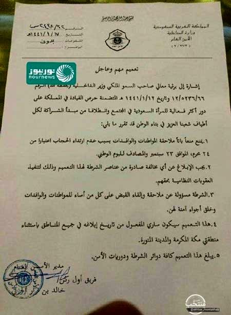 در روزهای اخیر تصویری از یک نامه در شبکههای اجتماعی ایران دست به دست میشود که در آن گفته شده از تاریخ 23 ام سپتامبر که روز ملی عربستان است، برخورد با زنان بیحجاب در عربستان متوقف میشود و هر گونه برخوردی با پوشش زنان ممنوع است.