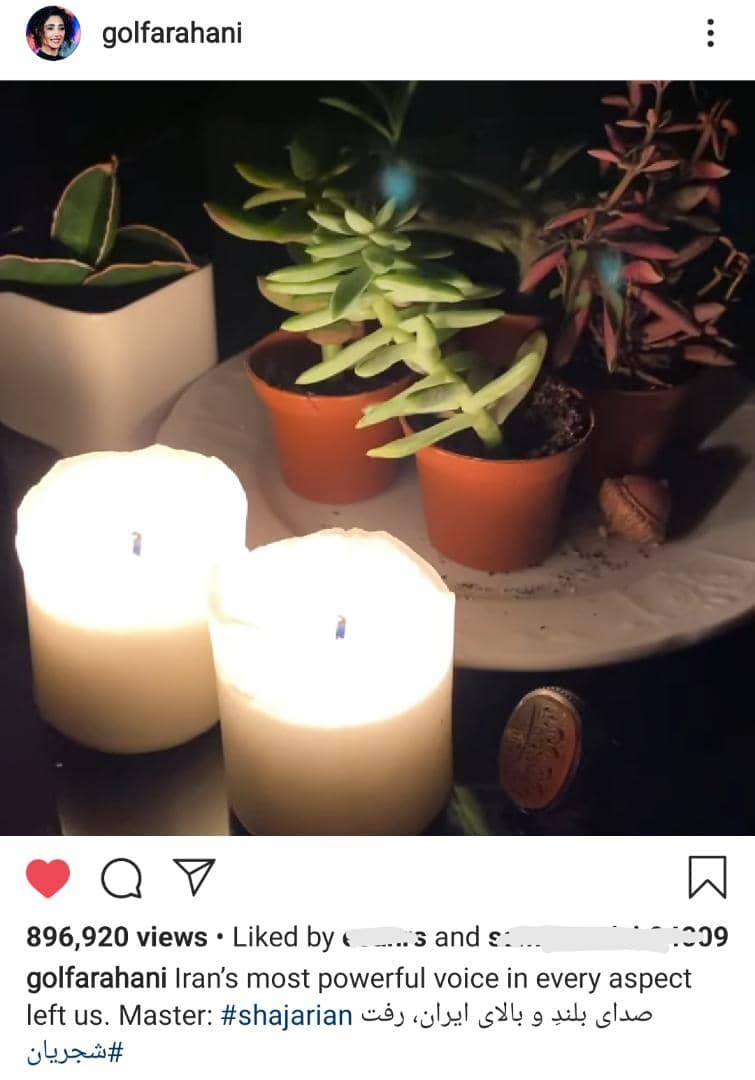 پست اینستاگرامی گلشیفته فراهانی به درگذشت استاد آواز ایران