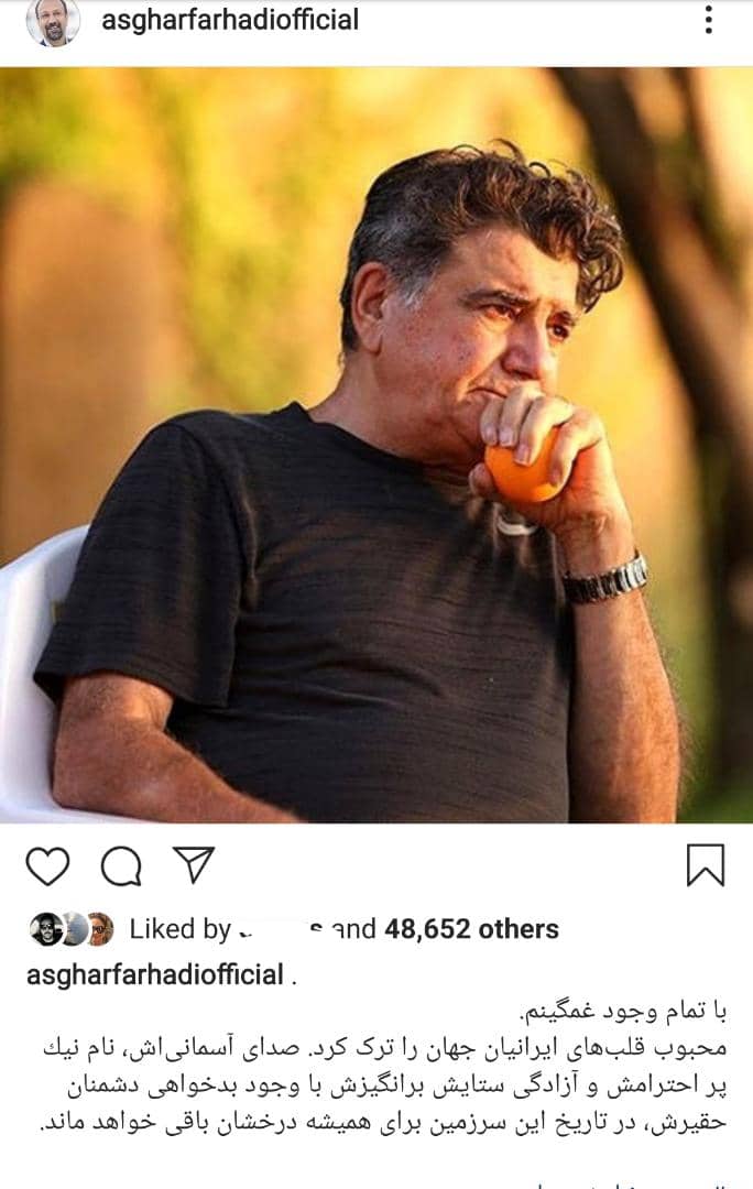 واکنش اصغر فرهادی به درگذشت استاد محمدرضا شجریان