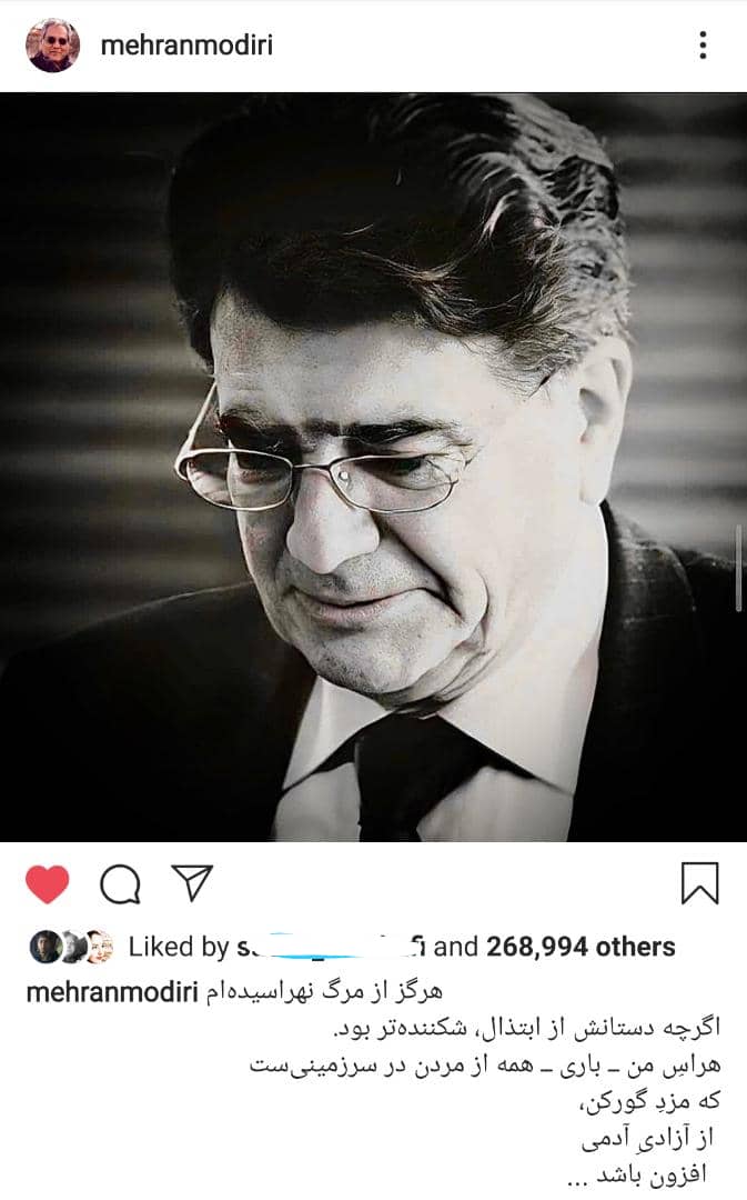 واکنش مهران مدیری به فقدان استاد آواز ایران