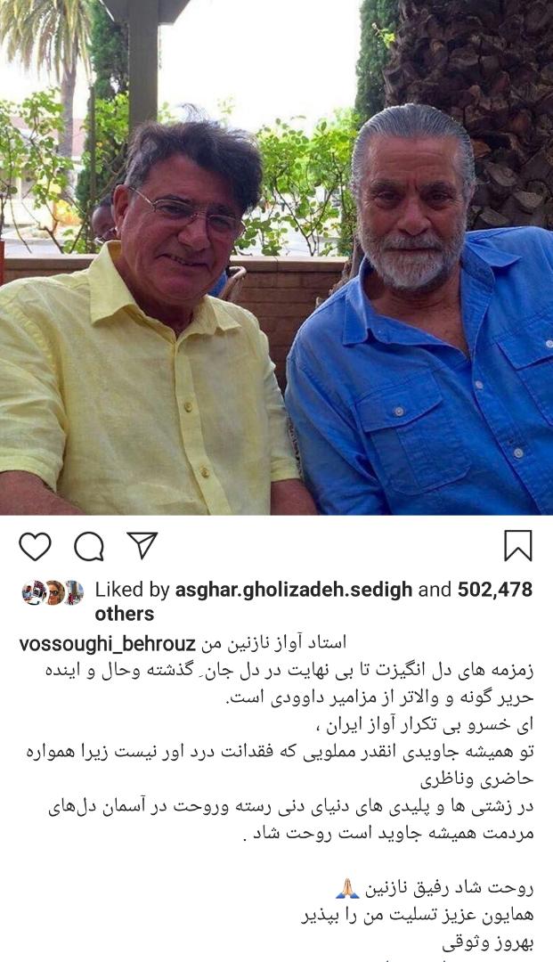 واکنش بهروز وثوقی خواننده ایرانی به درگذشت استاد آواز ایران