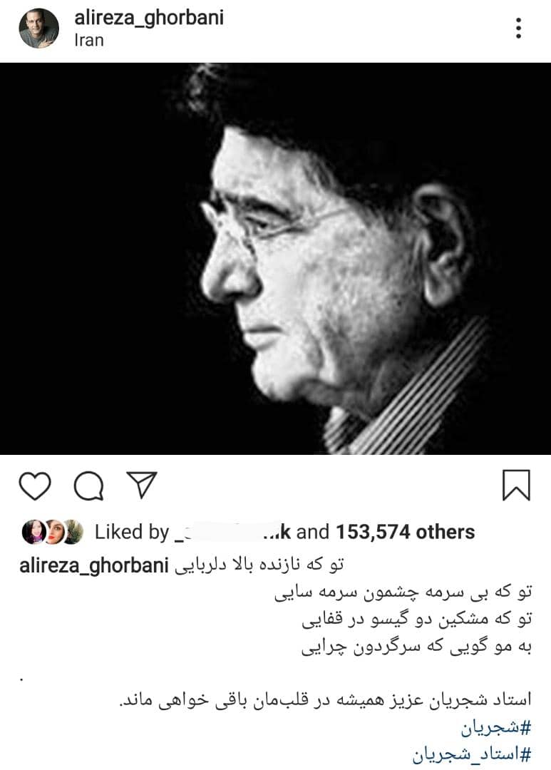 واکنش علیرضا قربانی به درگذشت استاد آواز ایران