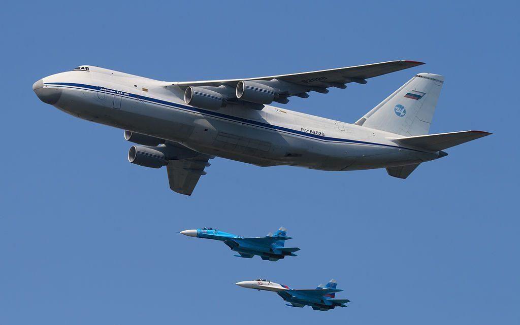 آنتونوف 124 که توسط نیروی هوایی روسیه اسکورت می شود