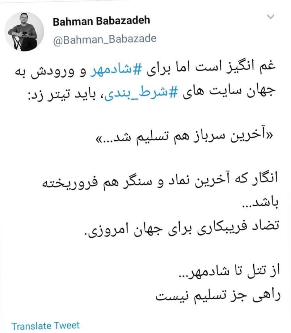 واکنش بهمن بابازاده، خبرنگار حوزه موسیقی به سایت شرط بندی شادمهر