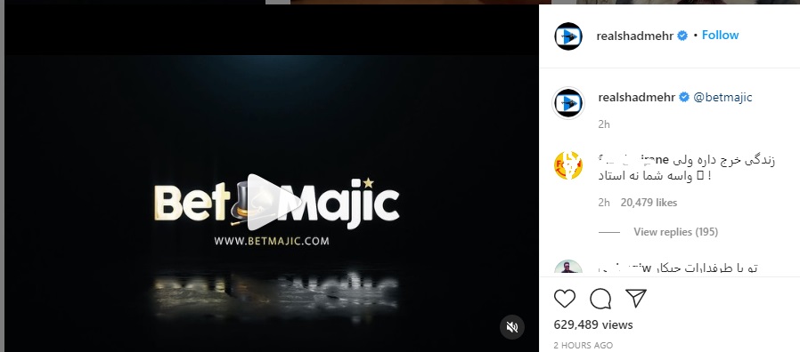 شادمهر عقیلی ساعتی پیش یک پست در اینستاگرامش گذاشت که در آن تبلیغ یک سایت شرطبندی را میکند، که واکنش منفی هوادارانش را در پی داشت.