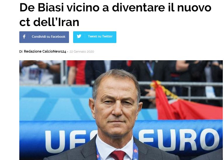 در این رستا امروز رسانه های مختلف ایتالیا این خبر را بازتاب دادند و تحلیل های مختلفی ارائه دادند. سایت «توتو مرکاتو» ایتالیا درباره این موضوع تیتر زد: دی بیاسی در آستانه هدایت تیم ملی ایران قرار دارد.
