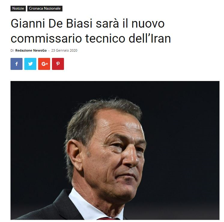 سایت «newsgo» تیتر خود را به این موضوع این طور انتخاب کرد: دی بیاسی به عنوان سرمربی جدید ایران انتخاب خواهد شد.