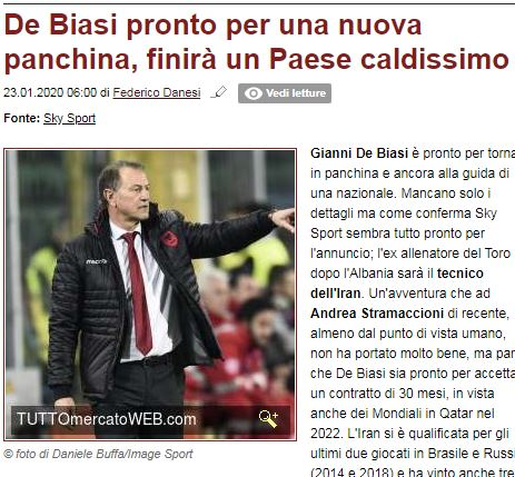 سایت «کالچو مرکاتو» نیز درباره این موضوع نوشت: دی بیاسی نزدیک به نیمکت تیم ملی ایران شد.