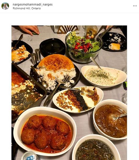 مهمانی و میز غذای مفصل خانم روناک یونسی برای حضور نرگس محمدی و علی اوجی