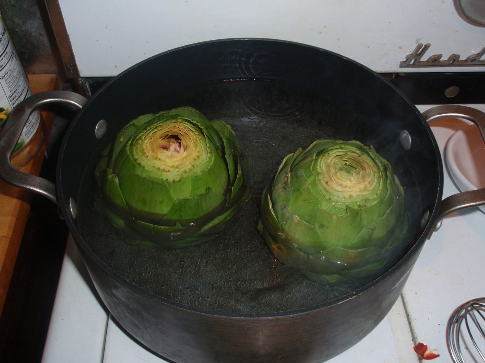 کنگرها را پاک کرده و بشویید و کنگرهای شسته را درون آب جوش و مقدار کمی نمک ریخته و 10 دقیقه بجوشانید.