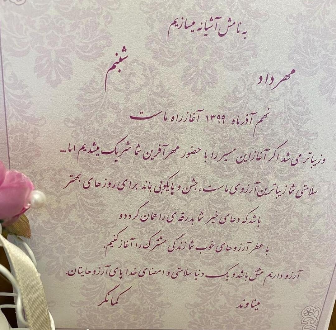 مهرداد میناوند پس از سالها جدایی از همسر اول، در آذر ماه 99 یعنی تنها دوماه پیش از فوت، ازدواج کرده بود. کارت عروسی مهرداد میناوند را در تصویر زیر ببینید. خبر تلخ فوت پیشکسوت فوتبال ایران با دانستن حسرتها و آرزوهای زندگی شخصی او تلختر میشود.