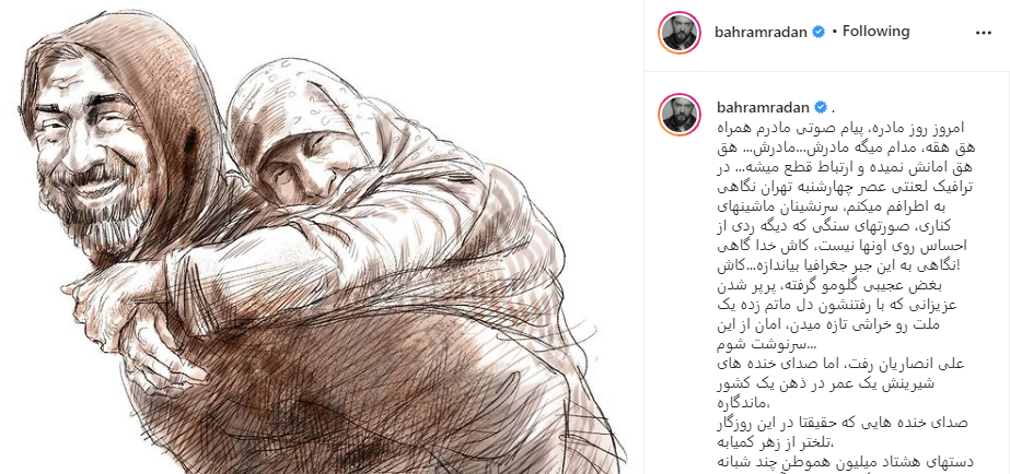 بهرام رادان، بازیگر محبوب سینمای ایران با انتشار تصویر زیر نوشت: