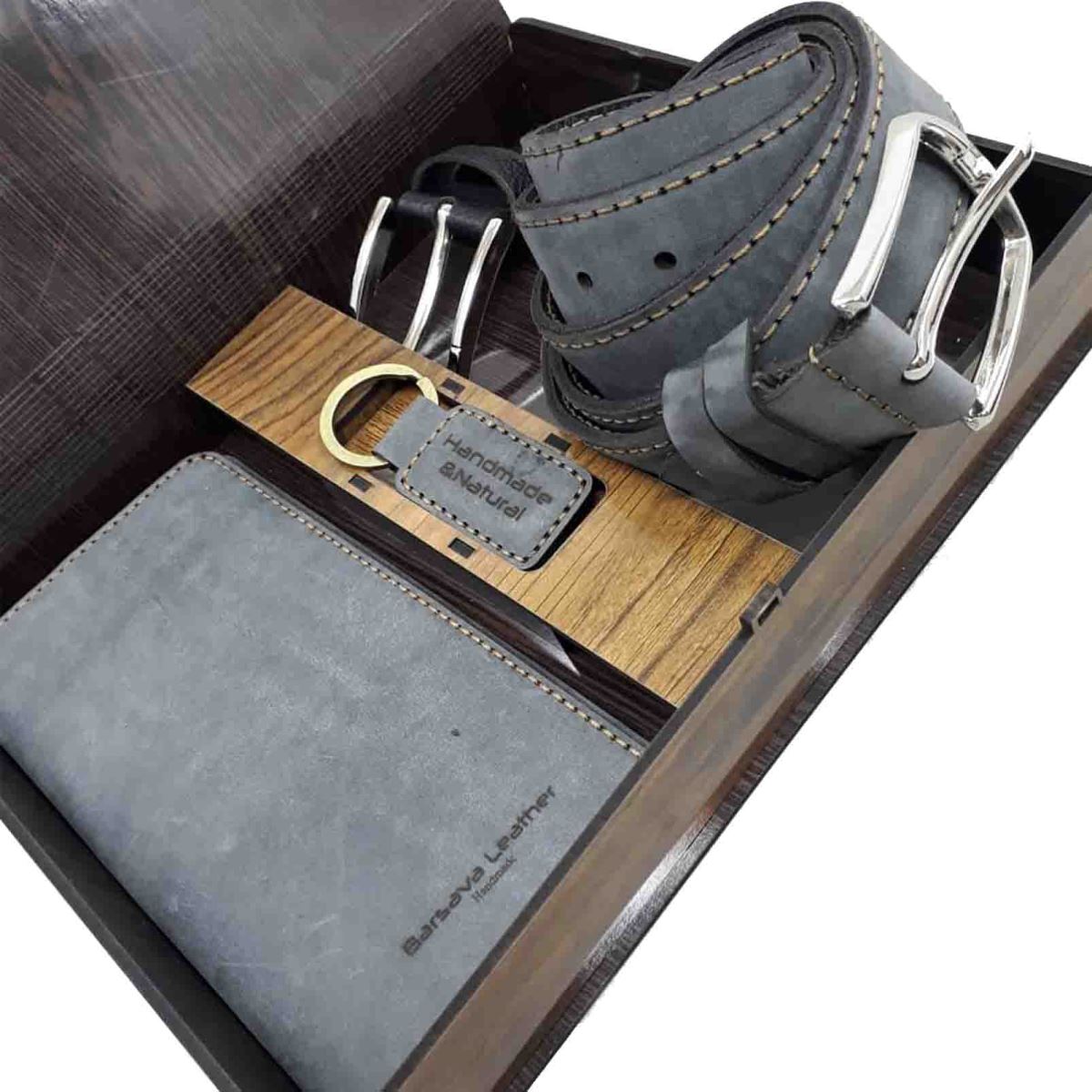 ست چرم کمربند و کیف پول، جزو اکسسوری های محبوب آقایان است. البته در بعضی از این ست ها دستبند یا فندک با روکش چرمی نیز وجود دارد. پس با توجه به رنگ موردعلاقه همسر یا پدر می توانید این مجموعه چرمی خاص را سفارش بدهید و با کارت تبریک این روز، عشقتان را ابراز کنید.