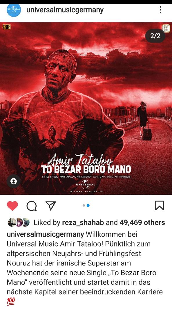 كمپانى Universal Music Germany، آهنگ "تو بذار منو برو"  امیرتتلو را در کنار دیگر خوانندههای معروف دنیا پست کرد!