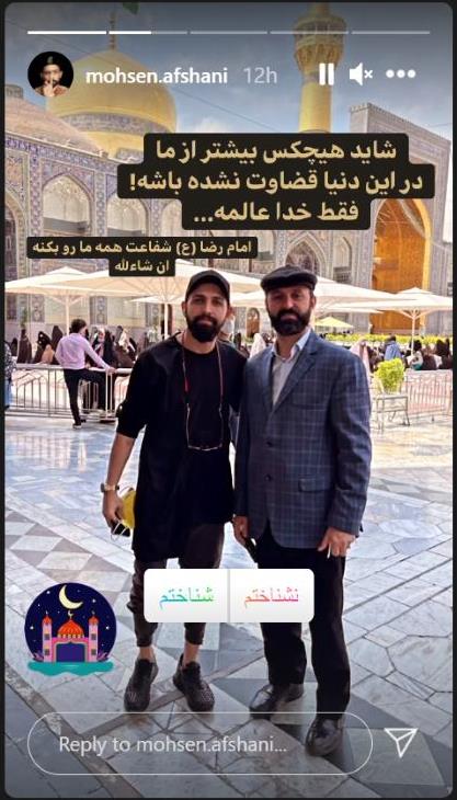 محسن افشانی، بازیگر سابق تلویزیون عکسی از خود به همراه سعید طوسی – قاری جنجالی – را استوری کرده است.