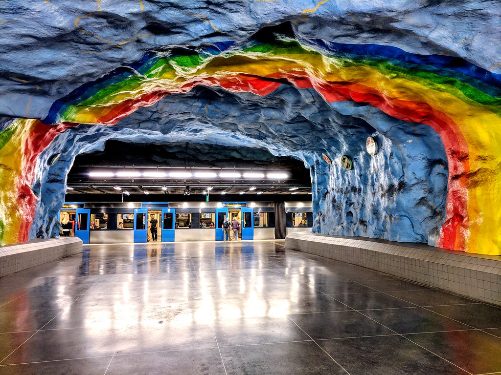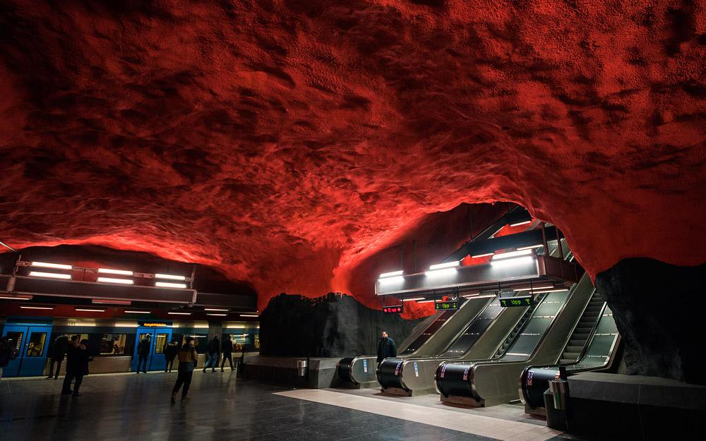 متروی اسُتکهُلم (یکی از قدیمیترین شبکه حمل و نقل عمومی در جهان است. بهرهبرداری از سامانه متروی استکهلم، در تاریخ 1 اکتبر سال 1950آغاز شد. متروی استکهلم، دارای ۱۱۰ ایستگاه است، اما ۵۳ ایستگاه آن بر روی زمین واقع شده است. این شبکه، که طول آنها در مجموع به ۱۰۵ کیلومتر میرسد، به عنوان «طولانیترین نمایشگاه هنر» توصیف شده است.از ۱۱۰ ایستگاه مترو، ۹۰ ایستگاه با آثاری از ۱۵۰ هنرمند تزیین شده است.