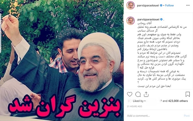پرویز پرستویی با انتشار پستی در صفحه اینستاگرامش نوشت: "آقای روحانی