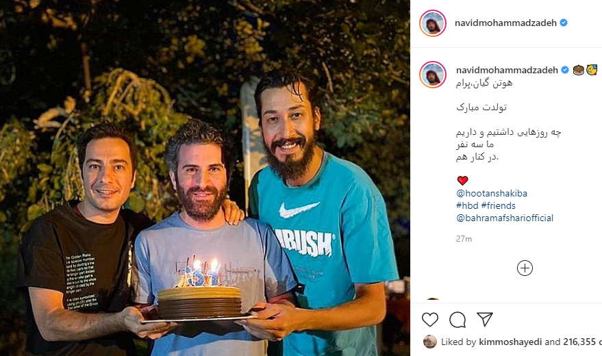 نوید محمدزاده برای تولد هوتن شکیبا عکس سه نفره ای منتشر کرده و نوشت: