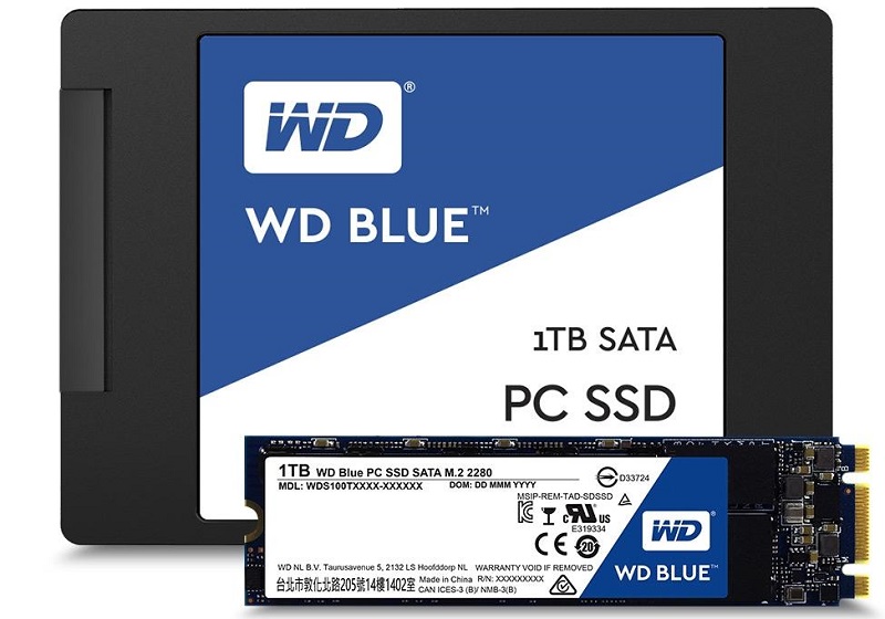 SSDهای سری آبی رنگ یا Blue وسترن دیجیتال در اصل همان SSDهای SanDisk X400 هستند. این سری نیز یک مدل میان رده محسوب میشود. اما در قیاس با مدل سبز رنگ از کیفیت بالاتری برخوردار است. در این سری از کنترلر کارآمدتر Marvell 88SS1074 و تراشههای حافظه پانزده نانومتری TLC NAND استفاده شده است. با توجه به بکارگیری کنترلر بهتر و تعبیه حافظه کش DRAM، سری آبی رنگ کارایی و دوام بیشتری برای کاربر به ارمغان میآورد.
