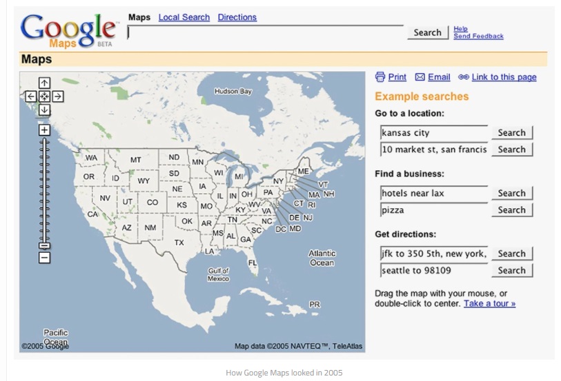 ۸ فوریه ۲۰۰۵: گوگل سرویس مپس را راهاندازی کرد