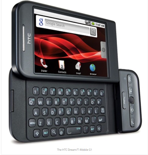 در سپتامبر ۲۰۰۸، اولین گوشی اندرویدی یعنی HTC Dream که در ایالات متحده به عنوانT-Mobile G1 شناخته میشود، معرفی شد و در اکتبر همان سال به بازار عرضه شد. این گوشی هوشمند از نظر طراحی ظاهری، به زیبایی آیفون ۳G نبود، اما توانست سیستم عامل اندروید را به عنوان سیستم عامل موبایل منبع باز با قابلیت سازگاری با خدمات گوگل به نمایش بگذارد.