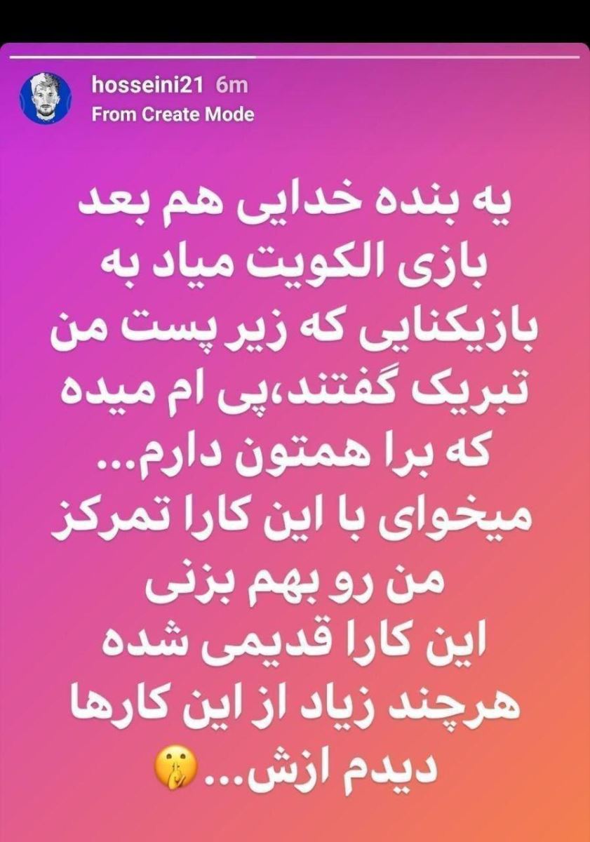 سید حسین حسینی خیلی زود به استوری سید مهدی رحمتی واکنش نشان داد.