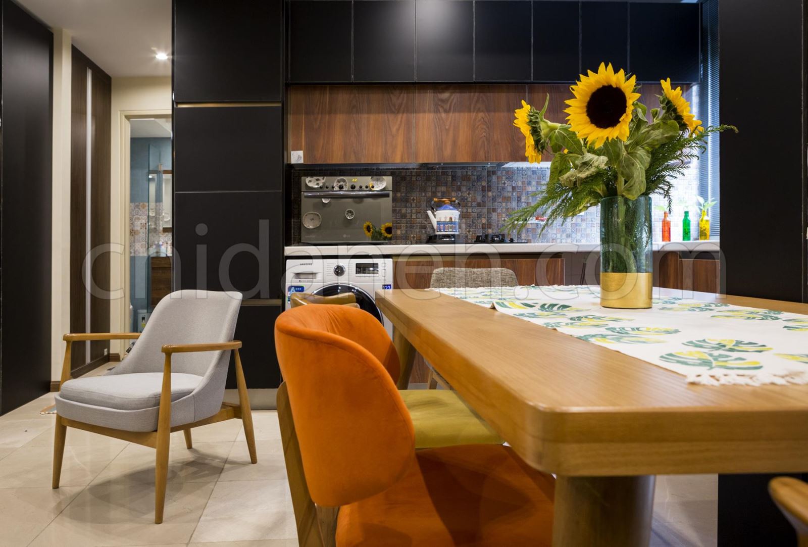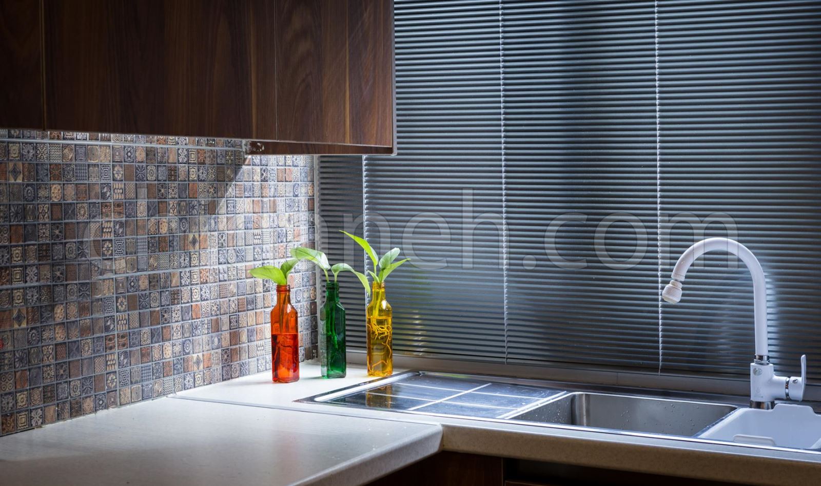 کابینت آشپزخانه به رنگ سیاه و در برخی از آنها با طرح چوب ساخته شده است. رنگ مات در کابینت ظاهر آن را خاصتر از دیگر فضاها می کند.