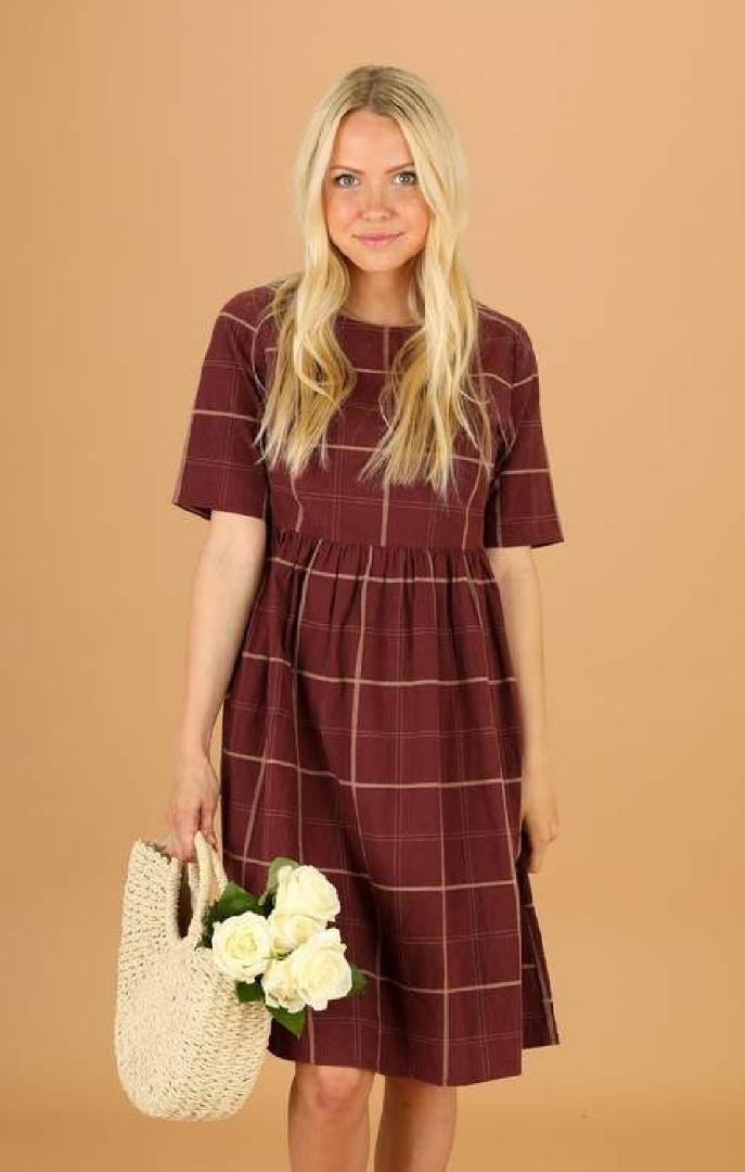 پیراهن زرشکی مناسب شب یلدا با دوختی ساده