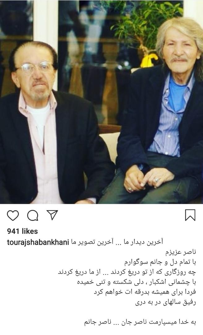 او که در غم از دست دادن رفیق اش ناصر چشم آذر در چند پست اینستاگرامی بسیار ابراز ناراحتی کرده بود هم اکنون به اون ملحق شد.