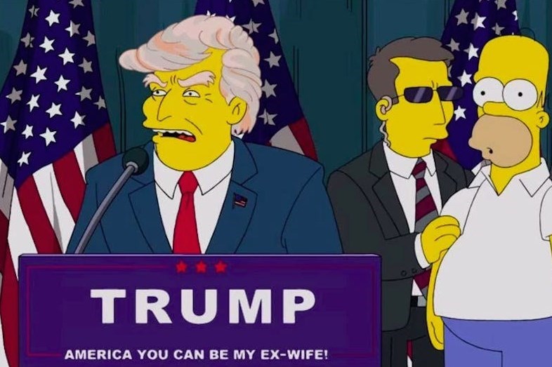 سریال انیمینشی محبوب سیمپسونها که ۳۰ سال از نمایش اولین قسمت آن تا به امروز میگذرد، به نوشته تسنیم این سریال پیشگوییهای عجیبی کرده است که تقریباً تمام آنها درست از آب درآمده است.شاید جالب باشد بدانیم این انیمیشن در سال ۲۰۰۰ درباره رئیس جمهور آینده ایالت متحده آمریکا خبر میدهد که قرار است فردی با مشخصات و ظواهر کاملاً منطبق با ترامپ رئیس جمهور این کشور شود.این فرد که همان ترامپ است حتی در صحنهای از کارتون در حال پایین آمدن از پلهبرقی است که تابلوی یکی از هوادارانش که بالای او ایستاده است از دست میافتد. دقیقاً همین اتفاق در یکی از حضورهای ترامپ در میان هوادارانش رخ میدهد که انطباق آن بسیار جالب است.