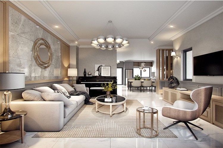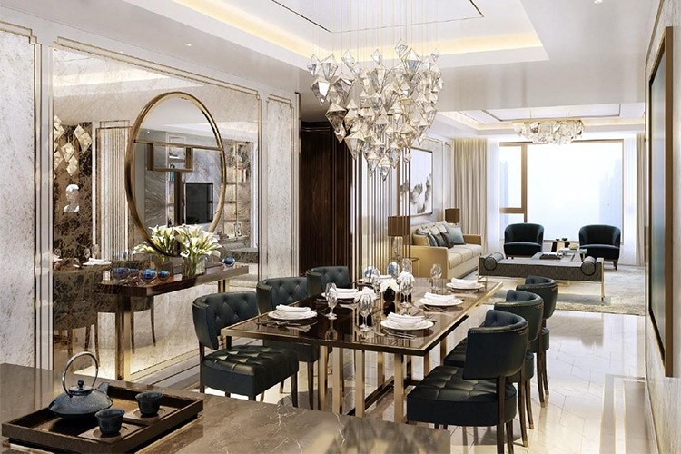 برای رسیدن به یک دکوراسیون کاملاً خاص و اروپایی باید ابزارهای لازم در این راستا را فراهم کرد. استفاده از لوازم بسیار لوکس مثل میز نهار خوری مشکی طلایی، در کنار مبلمان مشکی کرم سبب شده است فضا با پایه بسیار خاصی طرح ریزی شود. یکی از مواردی که همیشه در دکوراسیون مدرن به آن توجه میشود سادگی در طراحی است که در این تصویر بهخوبی مشهود است. امر دیگری که سبب میشود طراحی یک دکوراسیون به سبک ایده پردازی مدرن اروپایی درحرکت باشد بهره گرفتن از لوازم دکوری طلاییرنگ است. بیتأثیر نخواهد بود بهره گرفتن از وسایلی مثل لوستر طلایی، آینهای با قاب طلایی، میز پذیرایی طلایی، قابهای طلایی و پرده و مبل طلاییرنگی که در انتهای سالن مورداستفاده قرارگرفته است. میتوانیم به این موضوع اشاره داشته باشیم که برای دکوراسیون مدرن باید از وسایل ساده، اما لوکس بهره گرفته شود تا فضا بسیار خاص دیزاین شود. همچنین شما برای جلوه دادن بیشتر به طراحی خود میتوانید از رنگ طلایی کمک بگیرید.