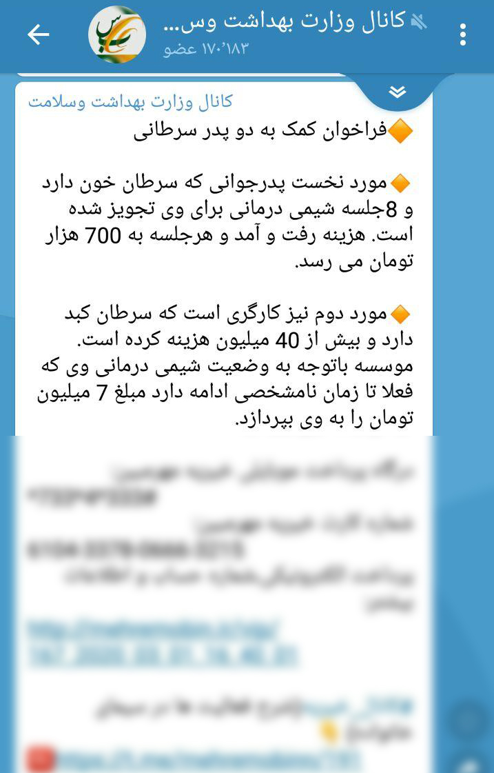 در روز‌های اخیر کانال تلگرامی با نام وزارت بهداشت در فضای مجازی فعالیت می‌کند که مربوط به وزارت بهداشت، درمان و آموزش پزشکی نیست.