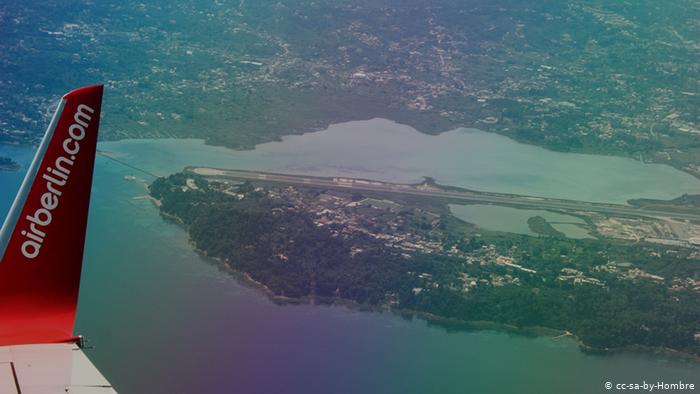 فرودگاه جزیره کورفو در بین دهانه یک خلیج ساخته شده است. در پایان باند پرواز یک جاده نیز قرار دارد که رفت و آمد خودروها هنگام نشست و برخاست هواپیماها از طریق یک چراغ راهنمایی کنترل میشود.