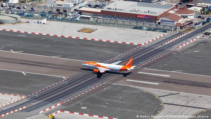 فرودگاه جبلالطارق در سال ۱۹۳۹ میلادی ساخته شده و خطرناکترین فرودگاه اروپا محسوب میشود. از باند پرواز این فرودگاه یک جاده نیز عبور میکند که به هنگام فرود و پرواز هواپیماها بر روی عبور خودروها و عابران پیاده مسدود میشود.