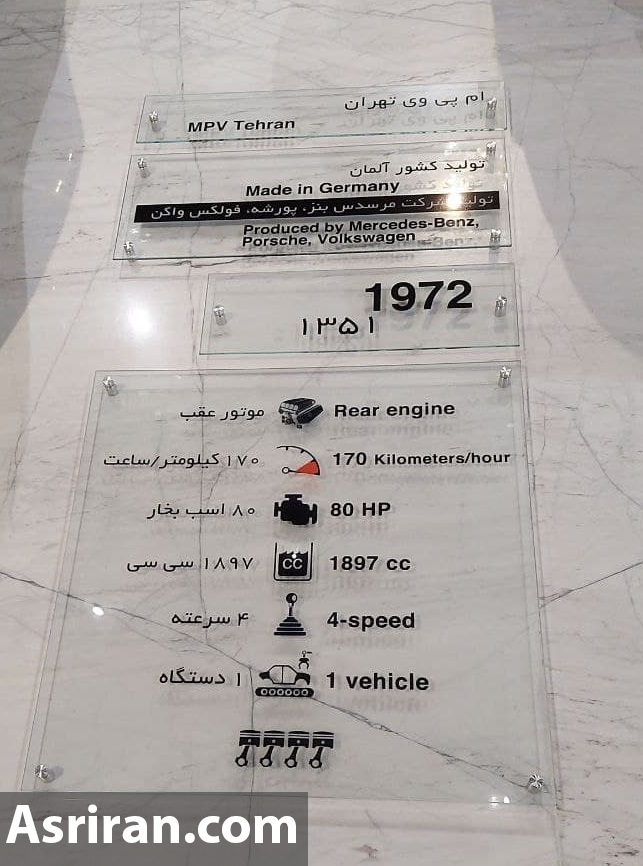 به گزارش عصر ایران این خودرو که " ام پی وی تهران" نام دارد به سفارش" ویلی برانت" صد اعظم وقت آلمان غربی و با همکاری 3 شرکت معروف بنز، پورشه و فولکس واگن در سال 1972 میلادی ( 1351شمسی) ساخته و به ایران هدیه داده شده است.