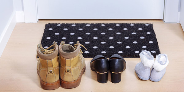 زمانی که به خانه بر میگردید چند ثانیه وقت بگذارید و کفشهای خود را از پا در آورید، در این صورت ساعات تلف شده برای جارو کشیدن و تمیز کردن خانه را ذخیره کردهاید. کفشهای بیرون باکتری، میکروب و آلودگیهای خارج از خانه را به فضای زندگی شما وارد میکنند. یک نیمکت یا صندلی در قسمت ورودی خانه قرار دهید تا افراد خانه بتوانند با نشستن روی آن به راحتی کفشهای خود را در بیاورند و دیگر بهانهای نداشته باشند. یک سینی مخصوص در ورودی خانه قرار دهید تا کفشهای خیس و گلی را درون آن بگذارند.