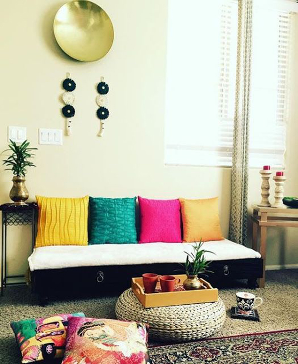 چیدمان خانه بدون مبل: کمک گرفتن از کوسن ها