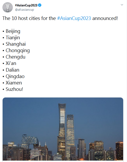 کنفدراسیون فوتبال آسیا 10 شهر میزبان مسابقات جام ملتهای آسیا 2023 چین را معرفی کرد.