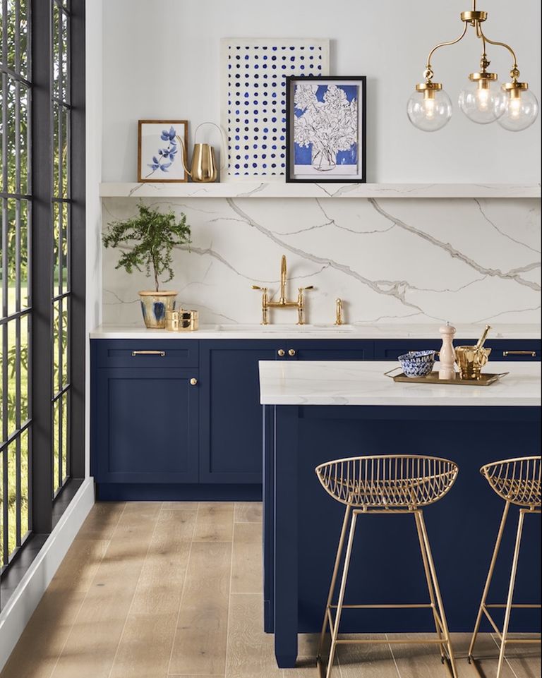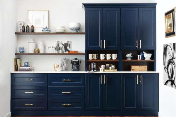 انتخاب کابینت به رنگ آبی کلاسیک آرامش را به آشپزخانه شما خواهد آورد. علاوه بر این این رنگ بسیار راحت با .سایل آشپزخانه ست میشود: