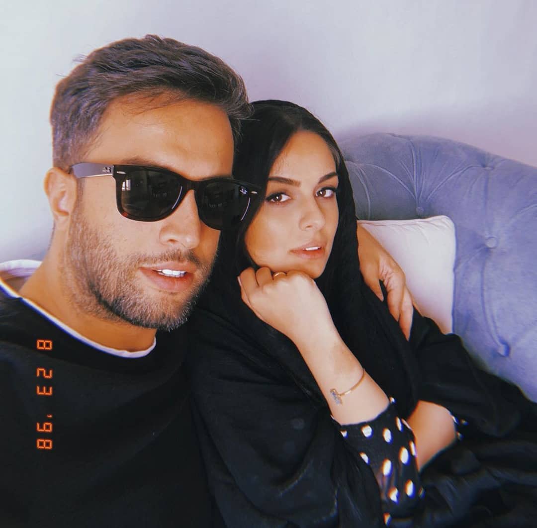 عکس بنیامین و همسرش در آسانسور