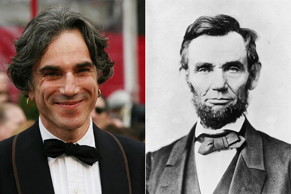 عکس دی لوئیس بازیگر فیلم لینکلندر کنارعکس واقعی آبراهام لینکلن