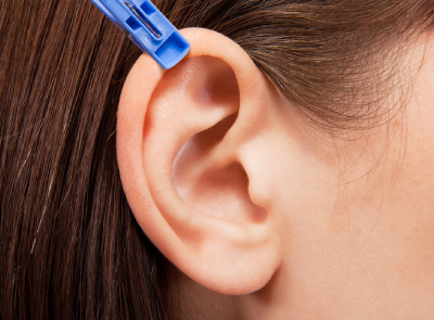 نگه داری گیره لباس بر روی گوش خود برای 5 ثانیه، و سپس آن را بردارید.