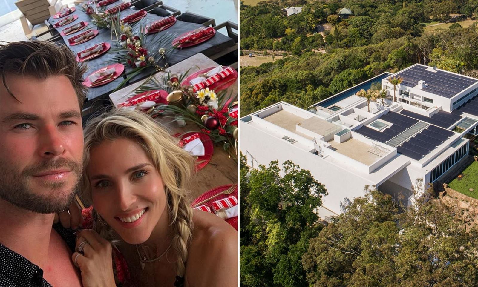 عمارت کریس همسورث بازیگر استرالیایی شناخته شده و السا پاتاکی به همراه سه فرزندشان در مناطق سرسبز خلیج بایرون در استرالیا واقع شده است. این خانه ی ۶۳۰ متری دارای ۳ اتاق خواب، یک اتاق مستر، دفتر کار، کتابخانه، آشپزخانه و فضا های نشیمن با چشم انداز کوه ها و اقیانوس و فضا های استراحت در کناره های پنجره می باشد. در دکوراسیون داخلی این خانه بیشتر قسمت ها با رنگ های ملایم و سرد و با استفاده از مبلمان مدرن و ساده طراحی شده اند و در بیشتر بخش هایی که دید مناسب به طبیعت خارج از خانه دارند از مبلمان مختلف مانند میز کار، میز ناهار خوری و کاناپه های مینیمال استفاده شده است. این خانه محیطی امن و دنج برای قرنطینه خانگی این خانواده در روزهای کرونایی است.