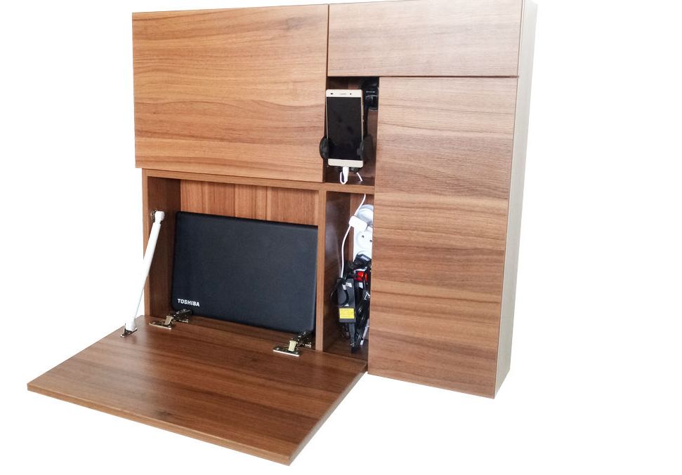 در این میز تحریرها تمامی نیازها در فضای نسبتا کوچکتری گنجیده و پاسخگوی نیاز همه افراد خانواده باشد. برخی از این میزتحریرها بر روی دیوار نصب میشود و کمترین فضا را اشغال می کند. و در صورت عدم نیاز این میز بر روی دیوار جمع میشود و کاملا فضا را باز میکند.در حالت باز شو به عنوان میز لپ تاپ و میز تحریر استفاده می شود.